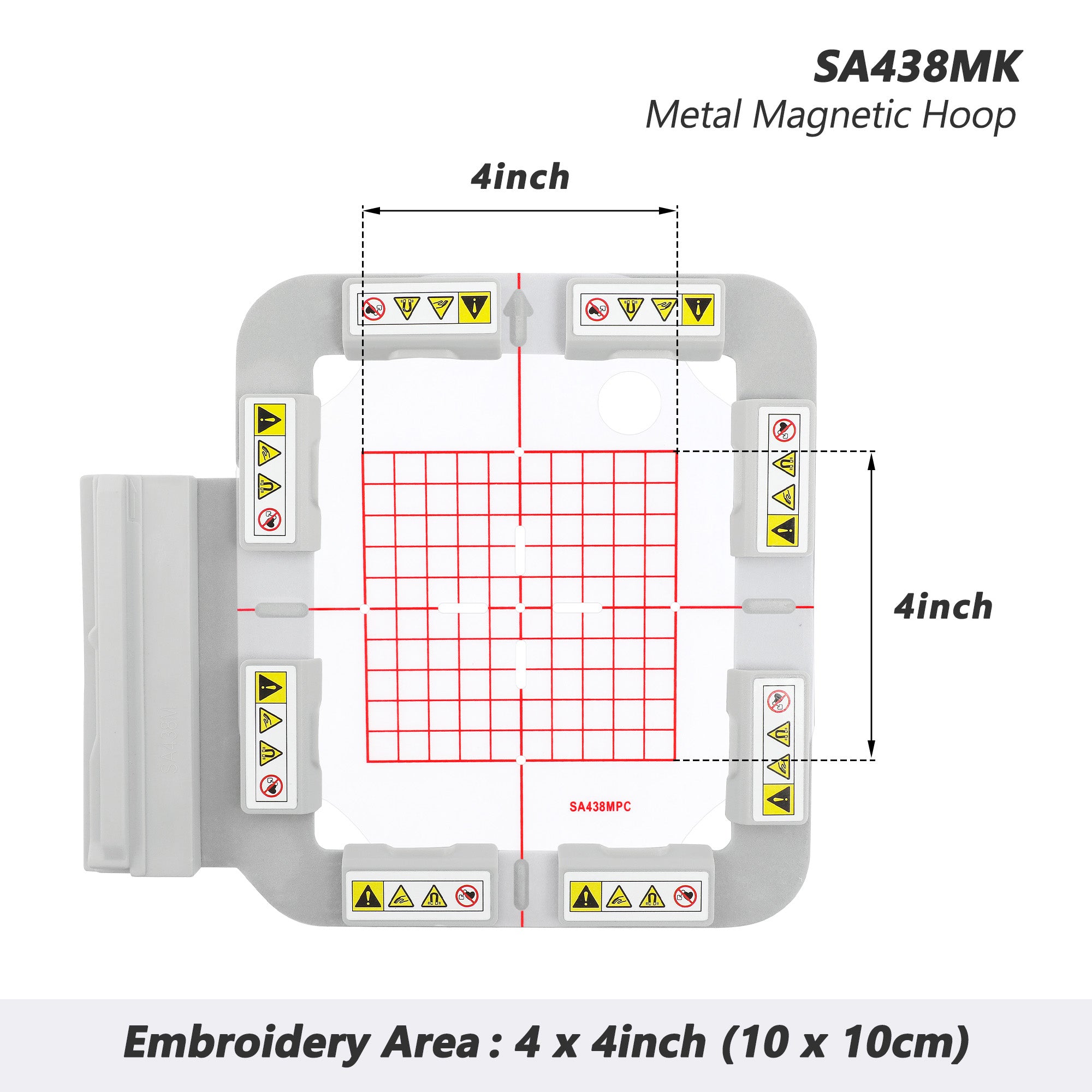 SA438MK: 1 x Magnetic Embroidery Hoop (Regular Metal Embroidery Hoop); 6 x Magnets; 1 x Grid Template.