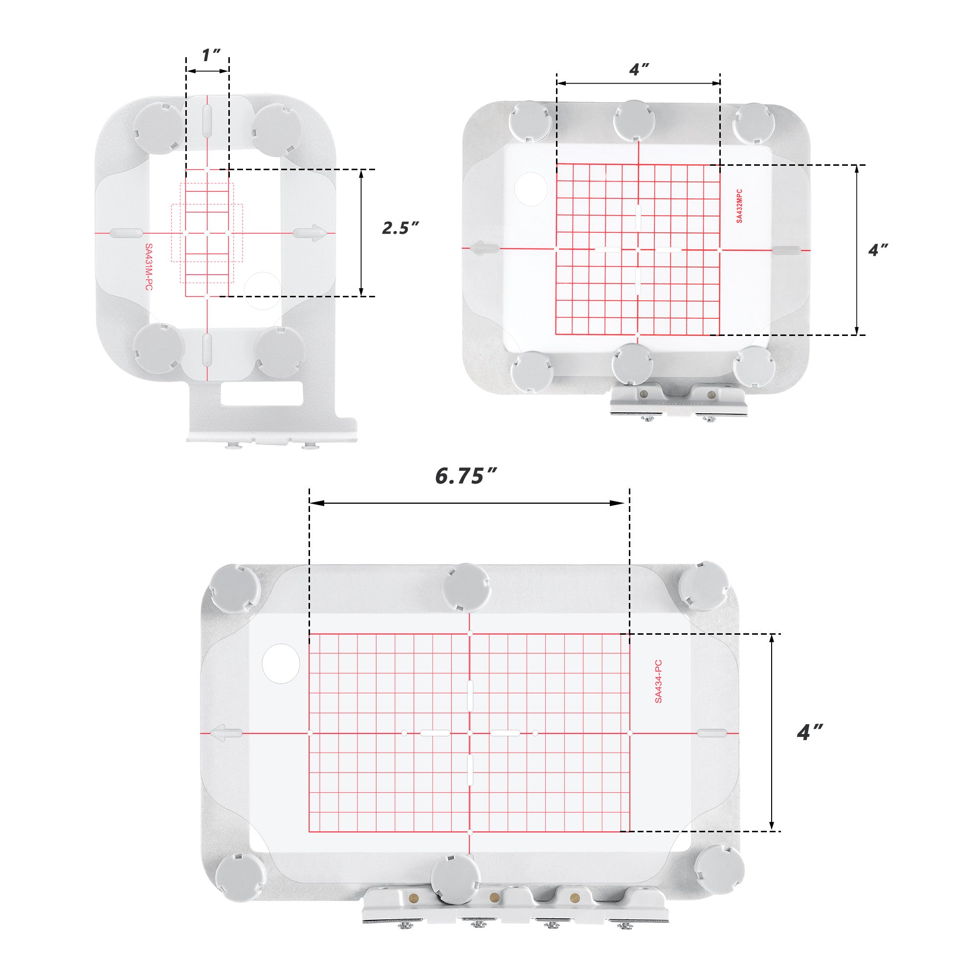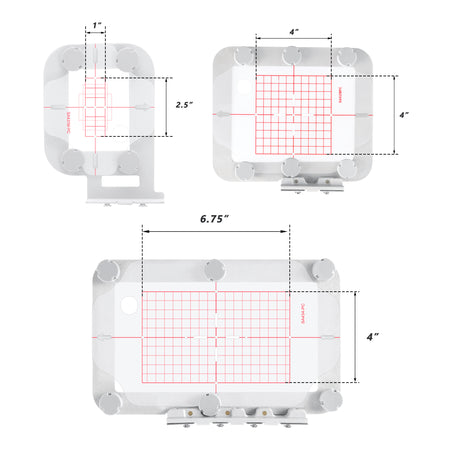 3in1-A: 3 x Magnetic Embroidery Hoop Set: SA431M (EF61M)+SA432M (EF62M)+SA434M (EF71M); 16 x Magnets; 3 x Grid Template.