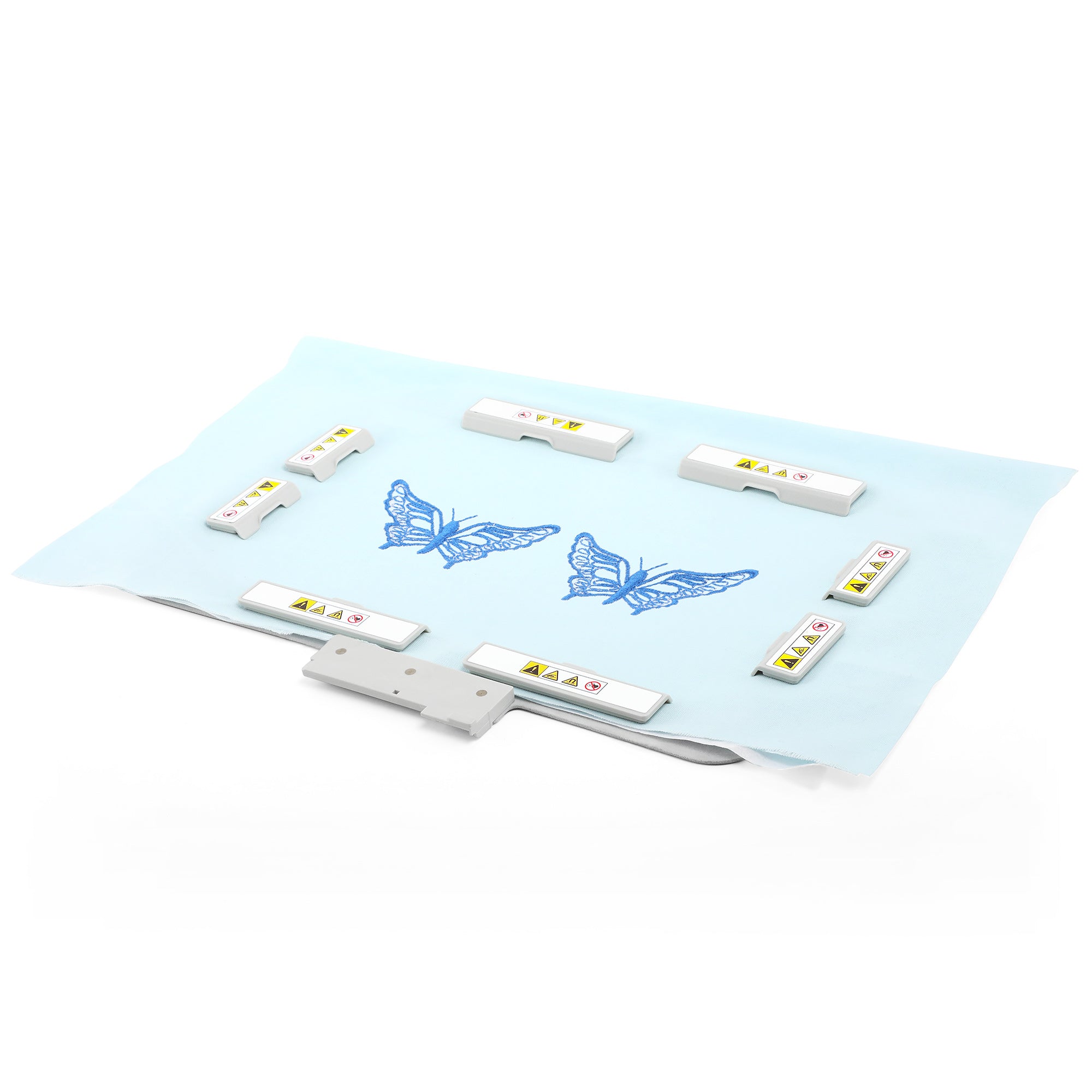 Telaio magnetico a blocchi quadrati con area utile di 9.4" x 5.9" (240 x 150 mm): un accessorio di ricamo pensato per allestimenti rapidi e precisi su macchina di ricamo. I magneti ad alta forza serrano in modo omogeneo il telaio tessuto, riducendo i segni di intelaiatura e migliorando l'allineamento di ricami immagini e logo da cucire. Tra i ricamo accessori più ricercati anche nelle mercerie online, funziona come pratico supporto per telaio ricamo su capi spessi o con cuciture.