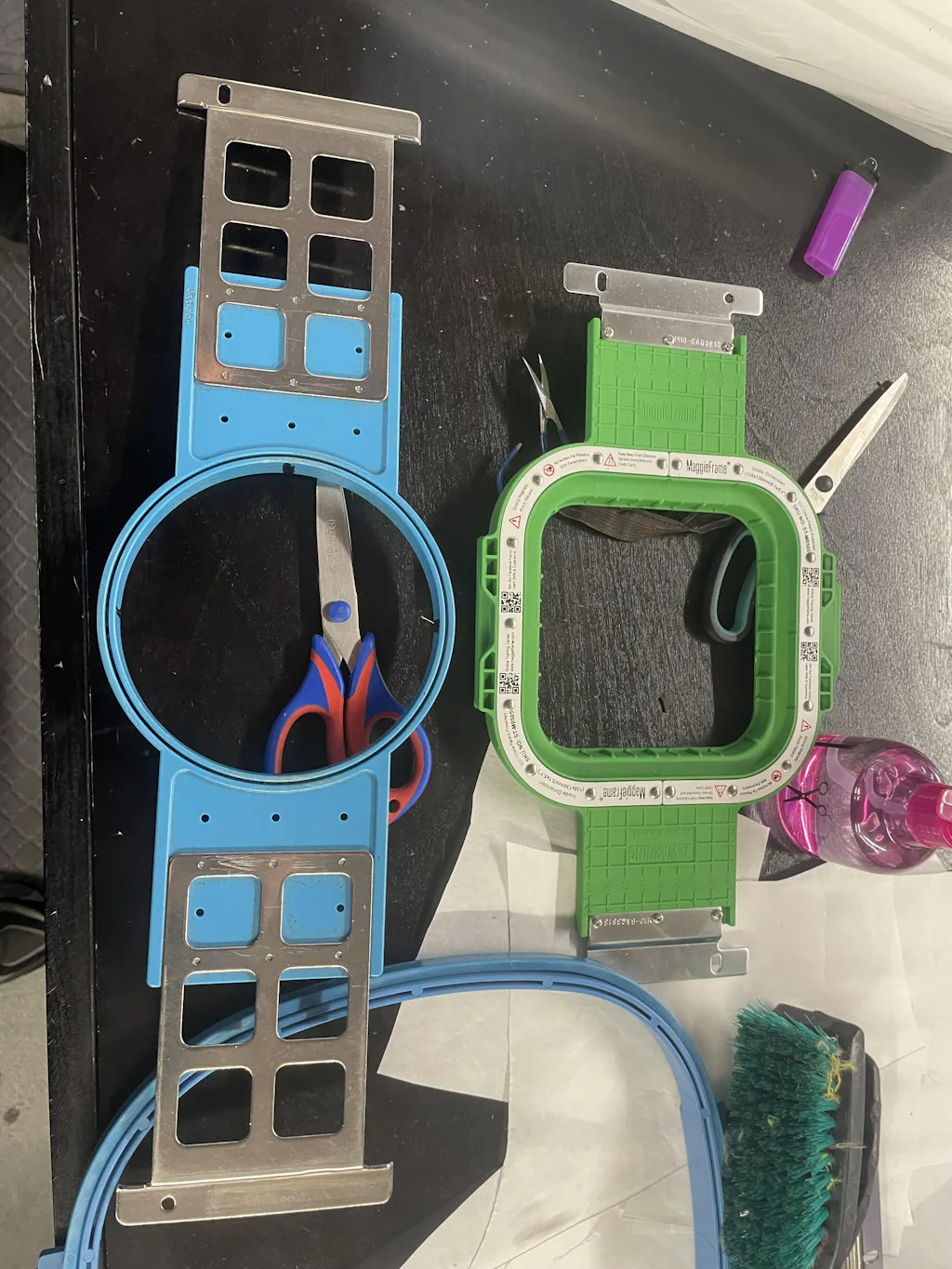 Sia MaggieFrame che Mighty Hoop sono telai da ricamo magnetici per Barudan, apprezzati per la presa stabile e la facilità di intelaiatura. Scegli in base alle tue preferenze di flusso di lavoro; entrambi sono utilizzati su sistemi compatibili QS.