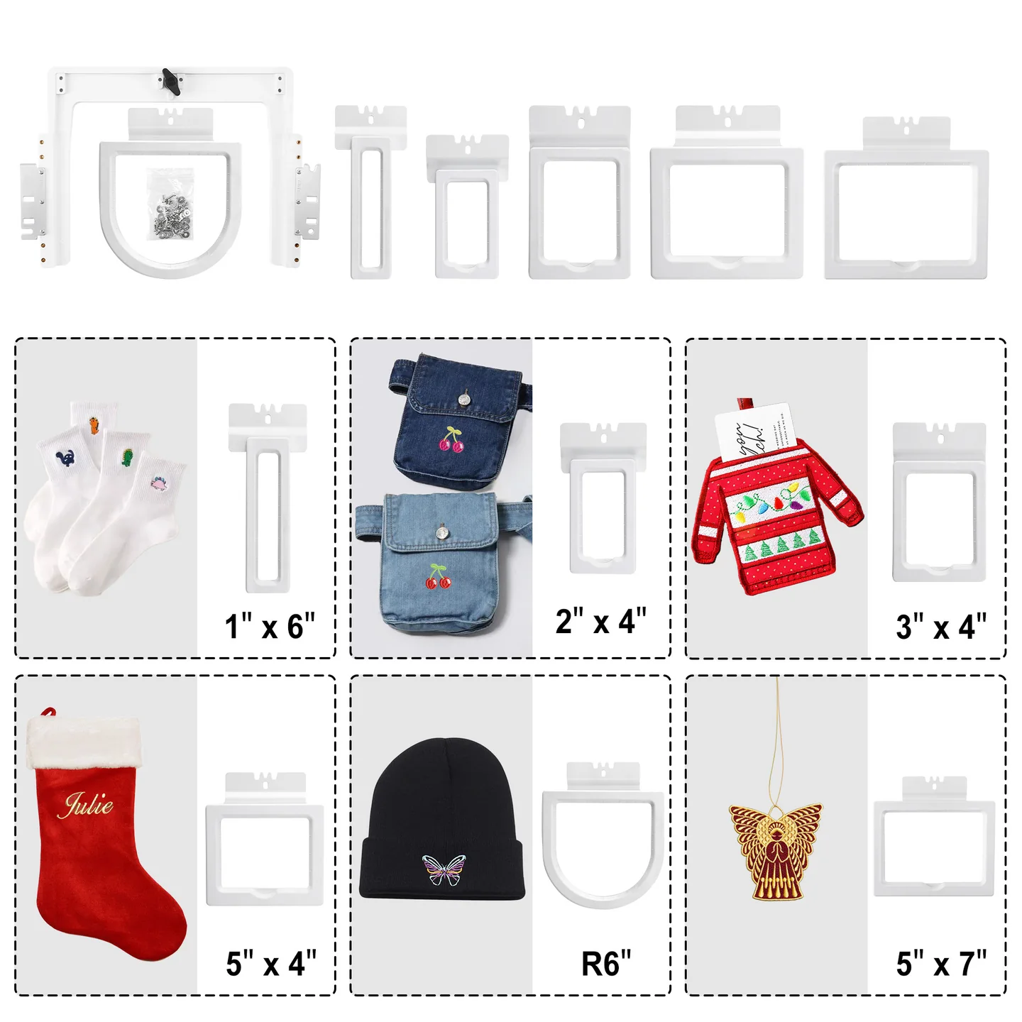 A2: Compared with Magnetic Hoop, the biggest advantage of the 6in1 set is that there are eight sizes in one set, which can meet your all embroidery needs. At the same time, the 6in1 set is very suitable for embroidery work such as socks, sleeves, trouser legs, necklines, etc. If you need to embroider these items, it is recommended to buy a set.