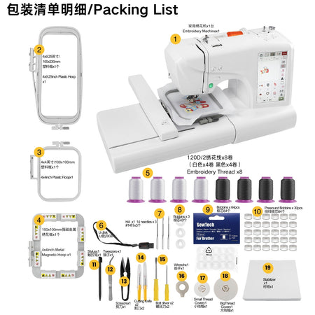 This easy-to-use embroidery machine comes with everything you need to start stitching right out of the box. Perfect for beginners and hobbyists, it features a large color touchscreen, built-in designs, and automatic threading for a smooth embroidery experience.
