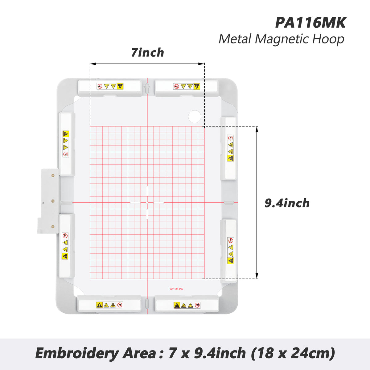 Yes, replacement grids are available for this MaggieFrame metal magnetic hoop model PA116MK. Each replacement grid ensures perfect alignment during fabric setup and repeated use with your magnetic embroidery frame. You can check our store or contact customer service to order the correct size for the 10.2″ × 7.9″ (260 × 200 mm) embroidery area.