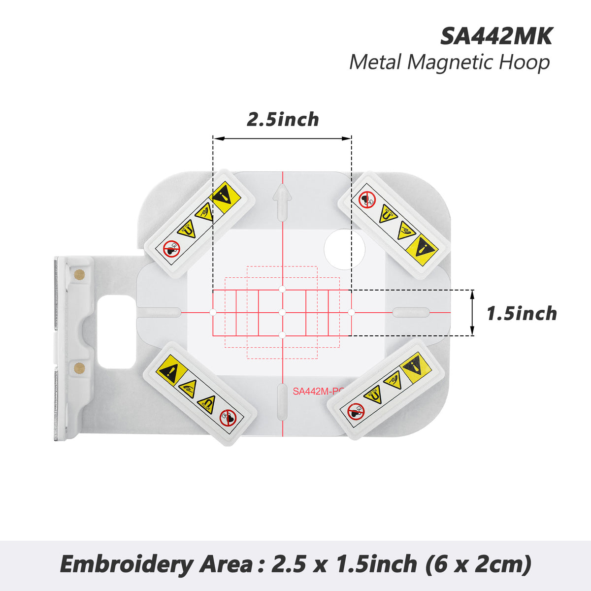 SA442MK: 1 x Magnetic Embroidery Hoop (Small Metal Embroidery Hoop); 4 x Magnets; 1 x Grid Template.