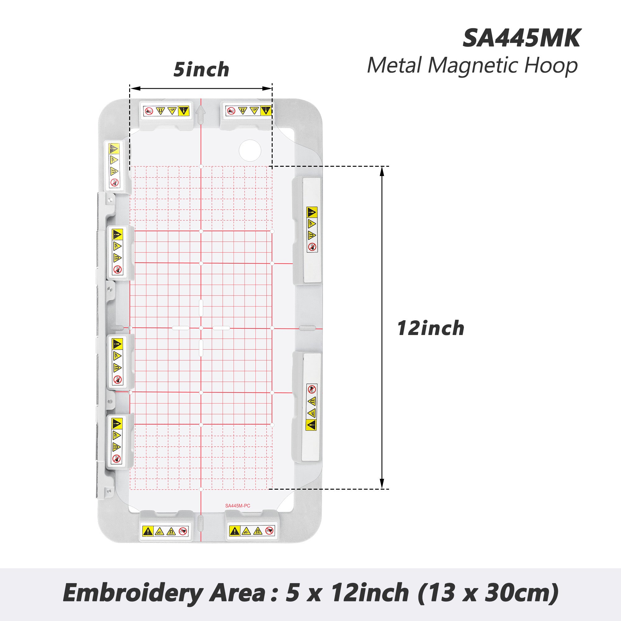 SA445MK: 1 x Magnetic Embroidery Hoop (Large Metal Embroidery Hoop); 8 x Magnets; 1 x Grid Template.