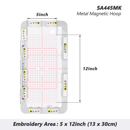 SA443MK: 1 x Magnetic Embroidery Hoop (Regular Metal Embroidery Hoop); 6 x Magnets; 1 x Grid Template.
